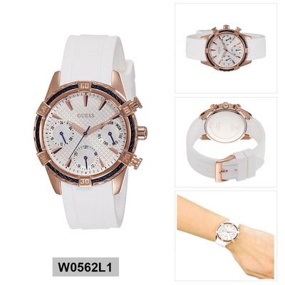 Guess White Dial Rubber Strap Ladies