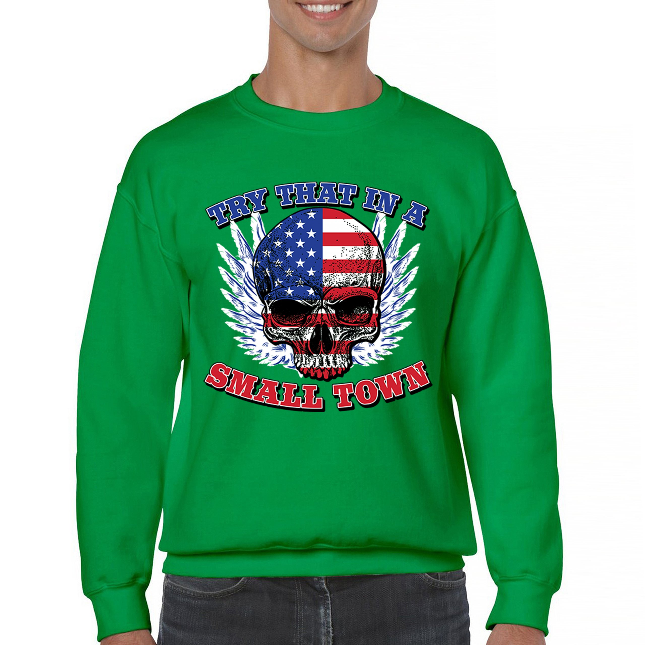 Try That In A Small Town Sweatshirt American Flag Stars and Stripes Skull Patriotic Country