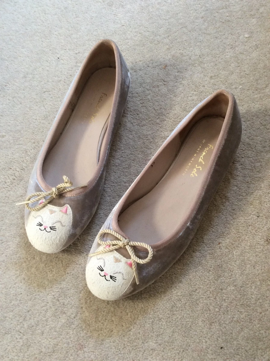 French Sole Velvet Cat Face Flat Shoes UK 2 EU 35 | eBay