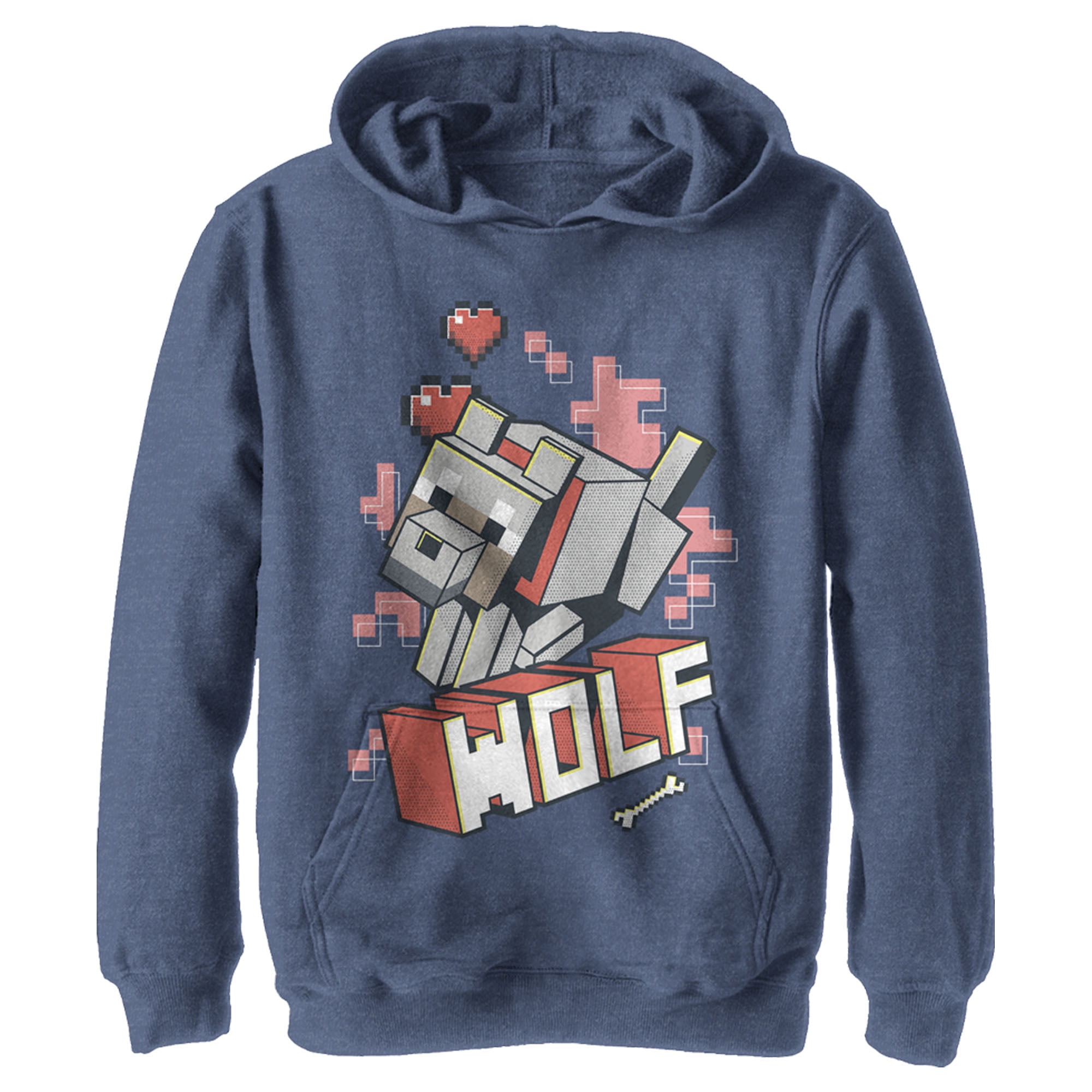 Boy's Minecraft Wolf Pull Over Hoodie Navy Blue Heather Small - Walmart.com