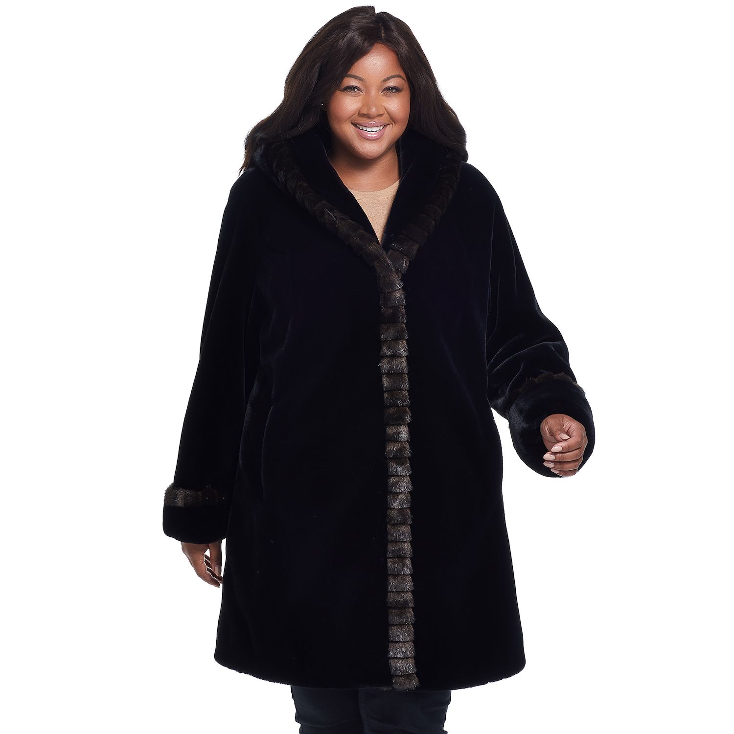 Plus Size Gallery Hooded Faux-Fur Coat